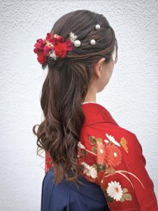 毎年ハーフアップのヘアセットが多いですが、編みおろしやシニヨンなど